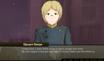 A neat WWI-flavored game that deals with a heavy topic: how people are able to live meaningful lives in a world menaced by something as meaningless as war. Of course romance is an option, but it's not the only one. There's a fair amount of humor to balance out the mood, which is nice, and the writing quality is good; I took a number of screenshots to show my friends in IRC, which is my usual yardstick for how much I enjoy a game's story. (Also, "please calm down" should be a choice in all dating sims.) Characters are complex and there's a great variety of them, so there's sure to be at least one to suit anyone's tastes. Gerhardt was my personal favorite, but a few others (like Wolf) unexpectedly grew on me. Walter's route is also a fantastic idea that took me by surprise. The Battles of Wits are enjoyable, although they're a bit on the easy side. I'm eagerly awaiting the second act.